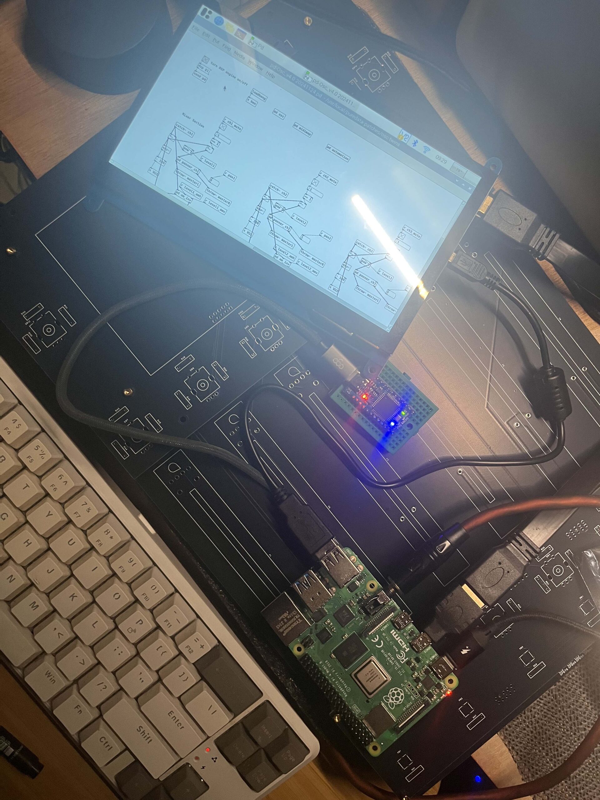 Inspired by Mitchell Waite’s Oscilloscope Graphic Artist, published in Popular Electronics in 1975, Oscil Twins translates the OGA circuit into software and reimagines this concept by integrating custom-developed sound patches in Pure Data and Linux system running on Raspberry Pi.